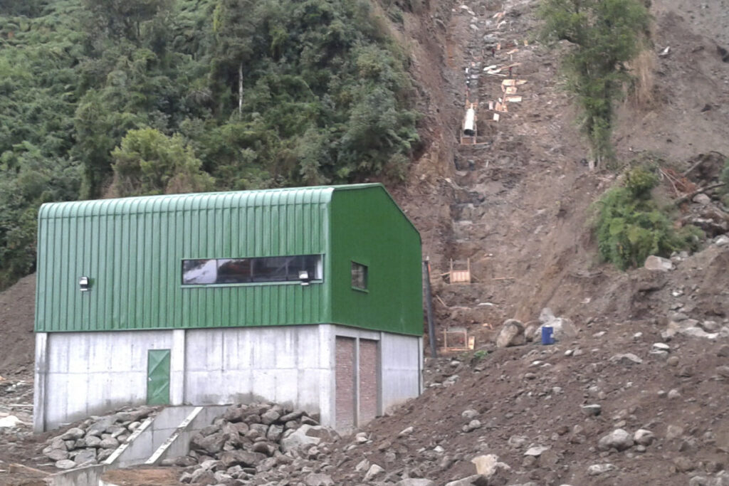 Se llevaron a cabo las obras civiles de la obra de toma, casa de maquinas, además de la instalación de 2.792 ml de tubería de presión e instalación de los equipos (turbina, compuertas, etc.)