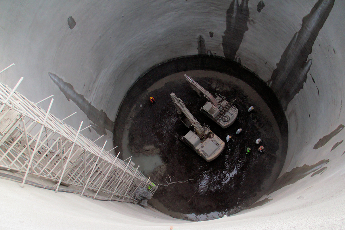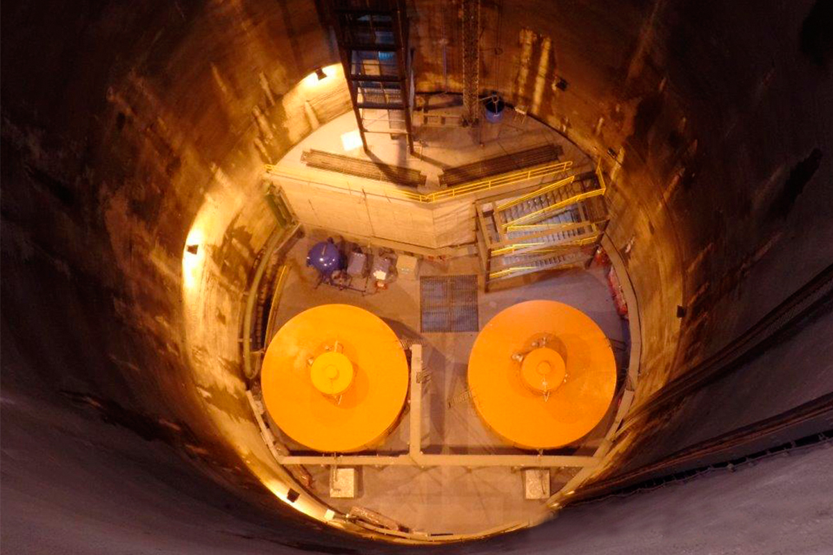 La mayor complejidad técnica fue sin duda, la ejecución de 4 piques verticales para llegar a esos 44 metros de profundidad. Uno de ellos, se realizó con 20 metros de diámetro y 50 metros de profundidad, realizado exclusivamente para hacer llegar a los equipos.