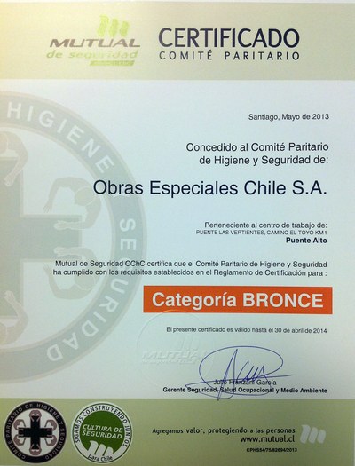 Nivel Bronce en la auditoría realizada por Mutual de Seguridad​
